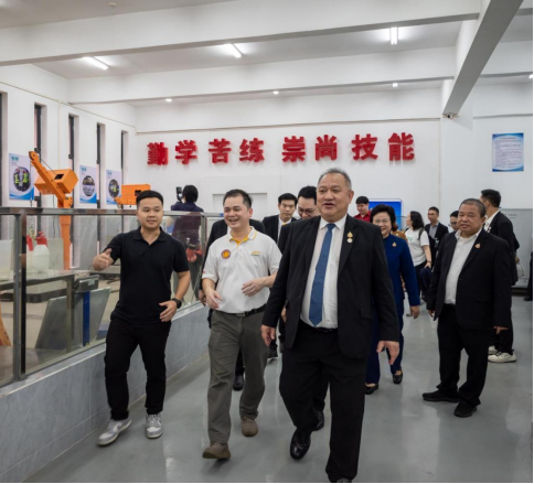 李麗校長代表學(xué)校對(duì)尤薩蓬·韋努科塞秘書長一行的到來表示歡迎,她重點(diǎn)介紹了學(xué)校在產(chǎn)教融合、校企合作方面的實(shí)踐經(jīng)驗(yàn),并陪同來賓參觀了學(xué)校羅克韋爾智能制造協(xié)同創(chuàng)新中心、長隆產(chǎn)業(yè)學(xué)院、迅達(dá)電梯產(chǎn)業(yè)學(xué)院、建筑工程技術(shù)實(shí)訓(xùn)基地等。尤薩蓬·韋努科塞秘書長對(duì)學(xué)校的熱情接待表示感謝,對(duì)學(xué)校產(chǎn)教融合的職教理念表示欽佩。代表團(tuán)對(duì)學(xué)校實(shí)訓(xùn)實(shí)踐布局、校企合作模式及技術(shù)應(yīng)用成果表現(xiàn)出濃厚興趣。