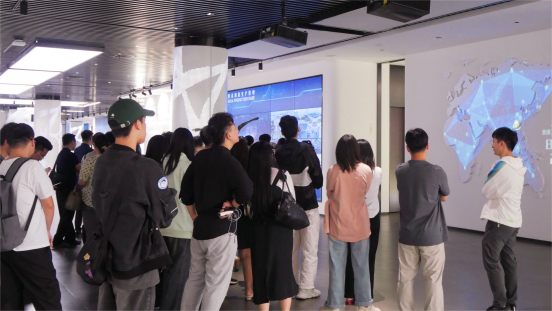 在中德工業(yè)服務(wù)區(qū)(三龍灣)園區(qū)展廳,學(xué)生們跟隨講解員認(rèn)真聆聽三龍灣的建設(shè)歷程及發(fā)展規(guī)劃,同時通過觀看展廳內(nèi)的圖片、文字、影像,了解了中德工業(yè)服務(wù)區(qū)在對外合作、搭建重大平臺項目、舉辦國際化品牌活動、服務(wù)企業(yè)雙向交流等方面的情況,直觀感受到粵港澳大灣區(qū)科技發(fā)展和先進(jìn)生產(chǎn)力。