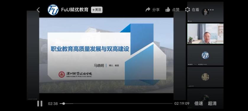 馬曉明教授講授“職業(yè)教育高質(zhì)量發(fā)展與‘雙高’建設(shè)”