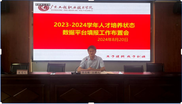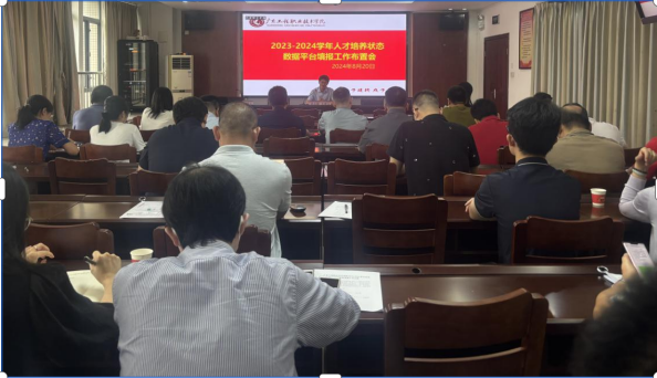 根據(jù)《關(guān)于做好職業(yè)教育 2023-2024 學(xué)年信息數(shù)據(jù)采集工作的通知》(教職成司函)的要求,為順利完成 2024 年全國高職院校人才培養(yǎng)狀態(tài)數(shù)據(jù)采集與管理平臺數(shù)據(jù)填報工作,2024 年 8 月 20 日,學(xué)校召開 2023-2024 學(xué)年人才培養(yǎng)狀態(tài)數(shù)據(jù)平臺填報工作布置會,副校長吳志敏主持,相關(guān)職能部門和二級學(xué)院(部)的主要負(fù)責(zé)人及數(shù)據(jù)采集員參加。教學(xué)質(zhì)量監(jiān)測與評估中心組織會議。
