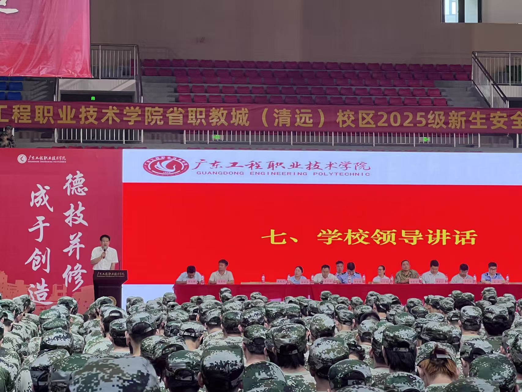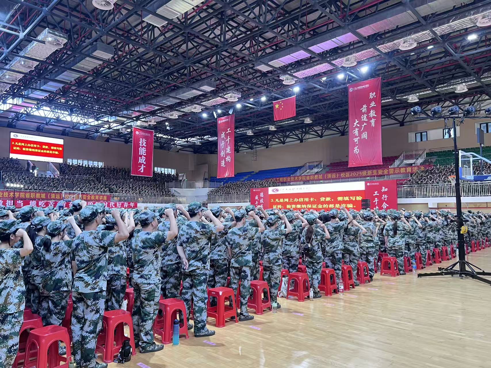 安全警示教育活動(dòng)在省職教城(清遠(yuǎn))校區(qū)體育館、廣州校區(qū)運(yùn)動(dòng)場(chǎng)開(kāi)展,屬地公安、消防等部門領(lǐng)導(dǎo)、應(yīng)急救護(hù)培訓(xùn)團(tuán)隊(duì)、軍訓(xùn)教官負(fù)責(zé)人,學(xué)校黨委委員、副校長(zhǎng)張永強(qiáng)出席了會(huì)議,學(xué)校總務(wù)后勤部(保衛(wèi)部)部、學(xué)生工作部、宣傳部(武裝部)及各二級(jí)學(xué)院負(fù)責(zé)人、新生輔導(dǎo)員老師參加了本次活動(dòng)。活動(dòng)中,學(xué)校義警隊(duì)進(jìn)行了軍事科目展演和換屆交接及進(jìn)行任職宣誓。學(xué)校黨委委員、副校長(zhǎng)張永強(qiáng)、清遠(yuǎn)市公安局職教城派出所郭智鵬副所長(zhǎng)、學(xué)工部副部長(zhǎng)李家標(biāo)、宣傳部(武裝部)副部長(zhǎng)查宇馳為優(yōu)秀義警隊(duì)員頒發(fā)了榮譽(yù)證書(shū)。交接完成后,全體新生進(jìn)行了反詐承諾宣誓。在領(lǐng)誓人的帶領(lǐng)下,省職教城(清遠(yuǎn))校區(qū)全體新生起立舉起右拳,作出了防詐、反詐的莊嚴(yán)承諾。