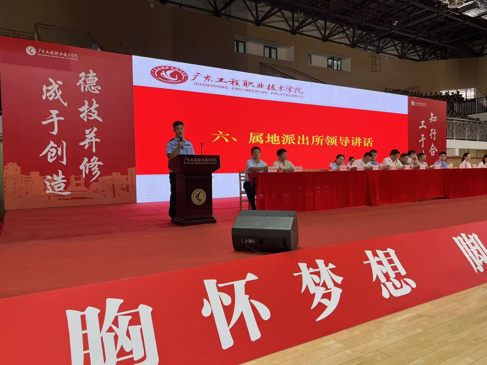 隨后,活動(dòng)邀請(qǐng)了職教城派出所民警許梓浩為全體新生發(fā)表警示教育講話。許警官對(duì)學(xué)生安全工作作了全面分析研判,通過(guò)系列真實(shí)案例作警示教育。