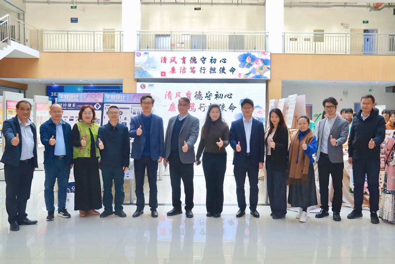 為全面貫徹落實新時代高校廉政文化建設要求,12月16日,由學校紀委主辦,藝術(shù)設計學院黨委承辦的“清風育德守初心 廉潔篤行擔使命”校園廉潔文化作品展在廣州校區(qū)學校圖書館正式啟幕。學校黨委書記葉忠明,黨委副書記、校長李麗,黨委委員、副校長吳志敏,黨委委員、副校長張小廣,黨委委員、紀委書記吳壁葵,紀檢室、馬克思主義學院、藝術(shù)設計學院、圖書館等部門負責人與師生代表共同參加作品展開幕式,開幕式由學校紀委副書記、紀檢室主任廖瑋主持。