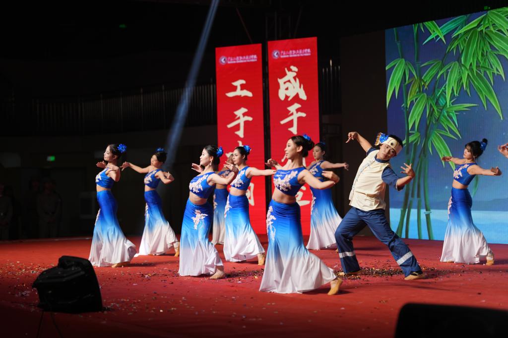 本場晚會共分為三個篇章,在《星啟征程·薪火傳》篇章中,由校藝術(shù)團(tuán)鼓隊(duì)、龍獅協(xié)會、英歌隊(duì)三支隊(duì)伍共同帶來舞蹈表演《舞耀嶺南》,激情洋溢,精彩紛呈。隨后,由文化旅游學(xué)院師生代表帶來舞蹈表演《文脈紅旅》,當(dāng)朗誦的清韻邂逅舞蹈的翩躚,是紅脈薪傳的精神守望。由汽車工程學(xué)院、財(cái)經(jīng)商貿(mào)學(xué)院帶來的舞蹈表演《有那么一個地方》,以新疆舞姿翩躚如畫,用悠揚(yáng)曲調(diào)婉轉(zhuǎn)情深,勾勒出各民族同心相依的美好圖景。由先進(jìn)制造學(xué)院帶來的舞蹈表演《鐵血軍魂》,為現(xiàn)場增添了一股源自忠誠、紀(jì)律與鋼鐵意志的磅礴力量,他們守護(hù)的,正是我們所抒情的萬家燈火與歲月。最后,由智能工程學(xué)院帶來舞蹈走秀《智啟新程?追光前行》,以酷炫科技感演繹人機(jī)互融,用藝術(shù)語言展現(xiàn)智能魅力。