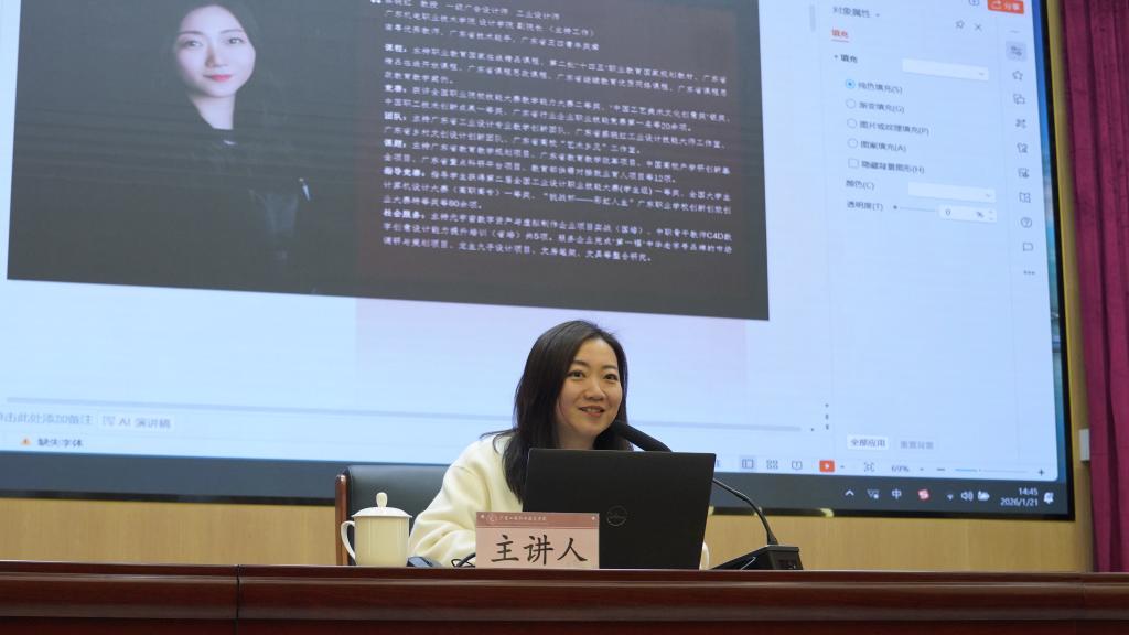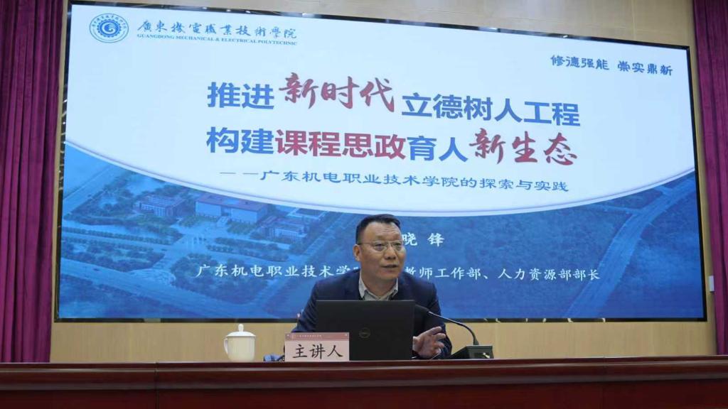 下午的培訓圍繞“課程思政”體系化建設(shè)展開。廣東機電職業(yè)技術(shù)學院行政教輔黨總支書記、黨委教師工作部部長蘇曉鋒以《推進新時代立德樹人工程 構(gòu)建課程思政育人新生態(tài)》為題,分享了構(gòu)建“大思政”格局的實踐經(jīng)驗,重點介紹了該校在教師隊伍建設(shè)、評價改革與思政育人能力提升協(xié)同推進方面的創(chuàng)新舉措。隨后,廣東機電職業(yè)技術(shù)學院設(shè)計學院副院長蔡曉紅教授以《夯實設(shè)計基礎(chǔ),助力職業(yè)啟航——以〈色彩設(shè)計〉課程思政建設(shè)為例》為題,展示了如何在專業(yè)課程中自然融入價值引領(lǐng),實現(xiàn)知識傳授、能力培養(yǎng)與價值塑造的有機統(tǒng)一。現(xiàn)代物流管理專業(yè)帶頭人殷華副教授則以《思政有機融入專業(yè)課程——職業(yè)教育課程思政建設(shè)探索與實踐分享》為題,分享了物流專業(yè)課程思政示范課的建設(shè)路徑與教學改革心得。專家們的分享案例具體、方法實用,為一線教師開展課程思政建設(shè)提供了可操作的范本。