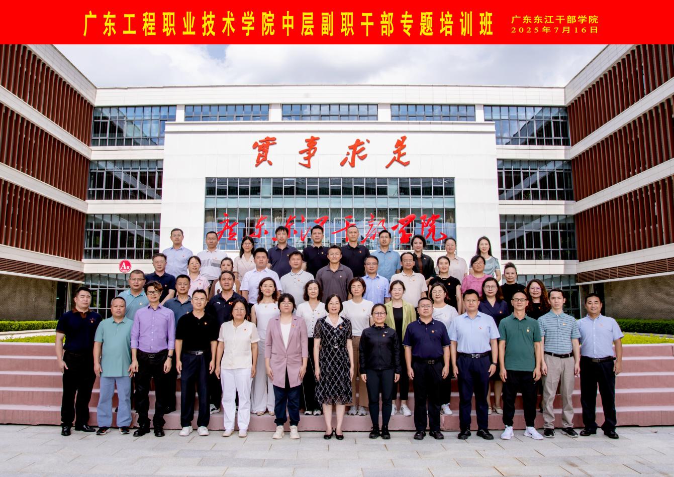 7月16日—19日,學(xué)校赴廣東東江干部學(xué)院舉辦中層副職干部專題培訓(xùn)班。學(xué)校黨委副書記陳冬梅帶隊(duì),全體中層副職干部參加了培訓(xùn)。培訓(xùn)將“紅色基因”與“時(shí)代精神”有機(jī)結(jié)合,綜合運(yùn)用課堂講授、研討交流等多種培訓(xùn)方式,共設(shè)置專題教學(xué)3場,現(xiàn)場教學(xué)3場,音樂黨課、分組研討各1場。
