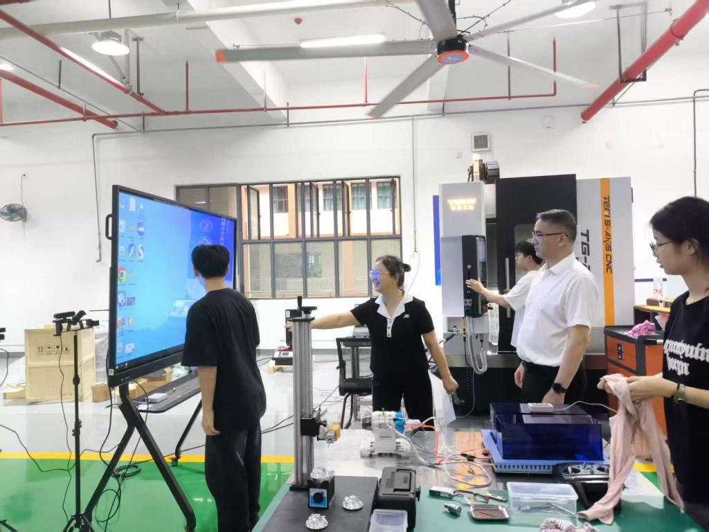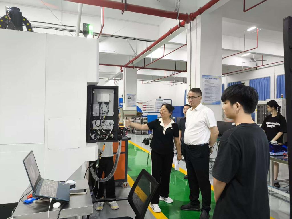 在先進制造實訓(xùn)中心,葉忠明書記實地察看了先進制造賽項備賽現(xiàn)場,詳細(xì)詢問訓(xùn)練進度、設(shè)備保障及生活安排等細(xì)節(jié),并與指導(dǎo)老師、參賽學(xué)生親切交談。他對師生們假期堅持高強度訓(xùn)練的拼搏勁頭給予高度肯定,對老師們犧牲假期堅守崗位表示誠摯感謝,反復(fù)叮囑大家注意勞逸結(jié)合,保持最佳競技狀態(tài)。