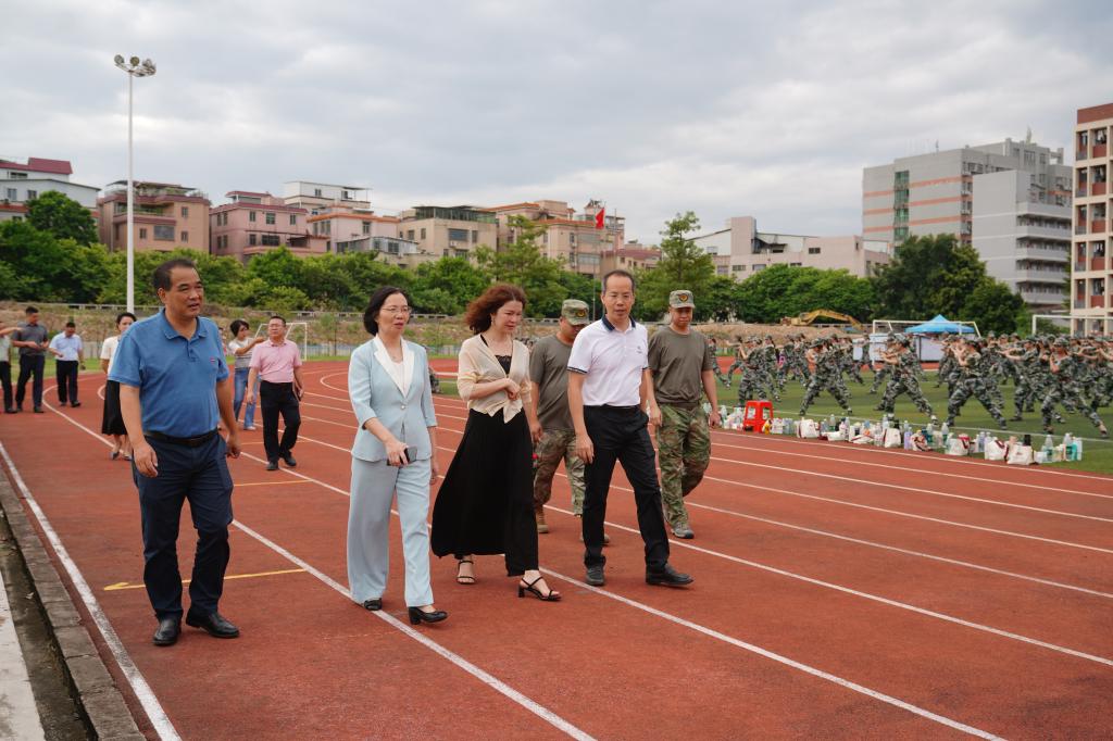 在廣州校區(qū)訓(xùn)練場(chǎng),陳冬梅副書(shū)記看望軍訓(xùn)的新生,對(duì)刻苦訓(xùn)練的學(xué)生表示肯定,鼓勵(lì)大家要聽(tīng)從教官安排,服從組織紀(jì)律,刻苦訓(xùn)練,厚植愛(ài)國(guó)情懷。