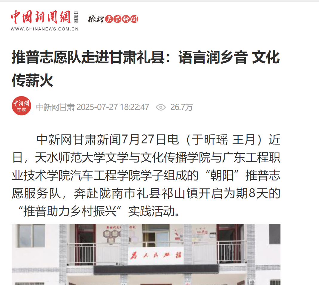 近日,天水師范大學文學與文化傳播學院與廣東工程職業(yè)技術(shù)學院汽車工程學院學子組成的“朝陽”推普志愿服務隊,奔赴隴南市禮縣祁山鎮(zhèn)開啟為期8天的“推普助力鄉(xiāng)村振興”實踐活動。該團隊以三國文化開展故事分享會、方言與普通話辯論,用游戲、書法課等分層教學,讓孩子在趣味中掌握語言、提升素養(yǎng)。孩子們在“拼音大冒險”游戲中準確發(fā)音,在書法課上書寫規(guī)范漢字,感受著語言的魅力。