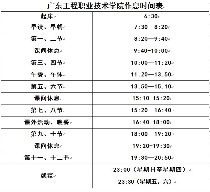 附件:廣東工程職業(yè)技術(shù)學(xué)院作息時間表