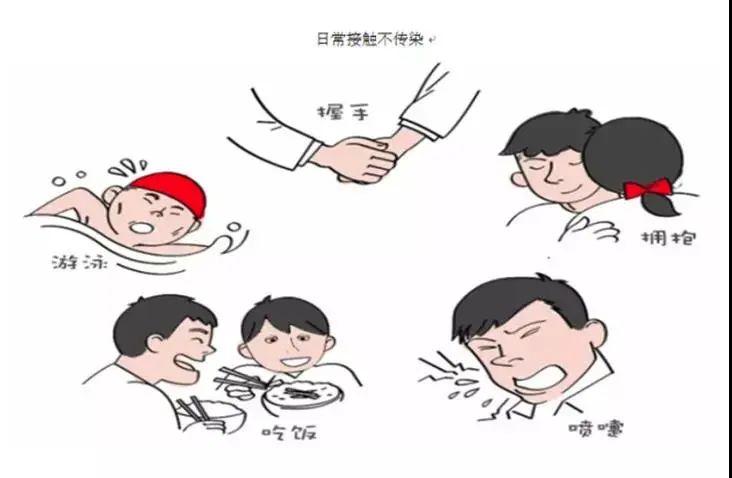 2. 與艾滋病感染者一起吃飯、擁抱等不會感染病毒。HIV病毒主要通過血液、精液、母乳傳播,因此與艾滋病患者吃飯、握手、擁抱等不會感染病毒;
