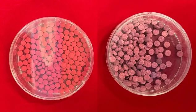麻古的外觀多為圓形、藥片狀,黃連素藥片大小,與搖頭丸相似,通常呈玫瑰紅、橘紅、蘋(píng)果綠等色,添加色素香料呈不同顏色和香味,上面印有“R”“WY”“66”“888”等標(biāo)記。
