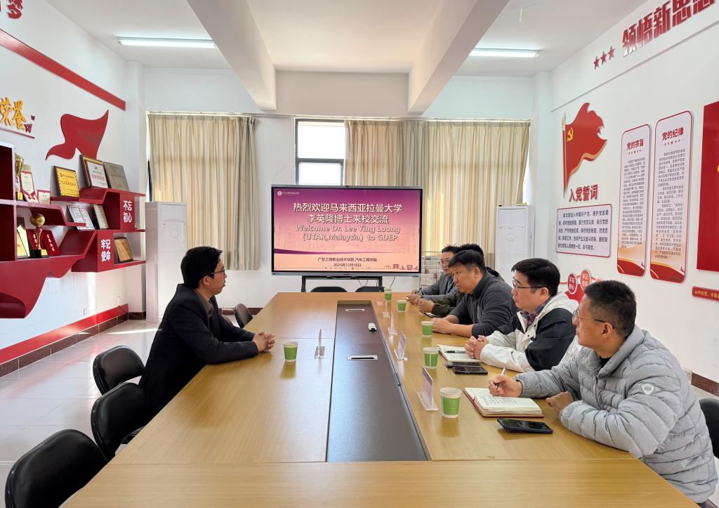 12月16日,馬來(lái)西亞拉曼大學(xué)李英隆博士到訪我校汽車工程學(xué)院開(kāi)展交流活動(dòng),雙方圍繞人才培養(yǎng)、競(jìng)賽交流合作等開(kāi)展座談會(huì)。汽車工程學(xué)院黨委書(shū)記朱靖、院長(zhǎng)鄺治全、國(guó)際教育學(xué)院院長(zhǎng)邱志遠(yuǎn),以及汽車工程學(xué)院副院長(zhǎng)呂文獻(xiàn)參與了座談。