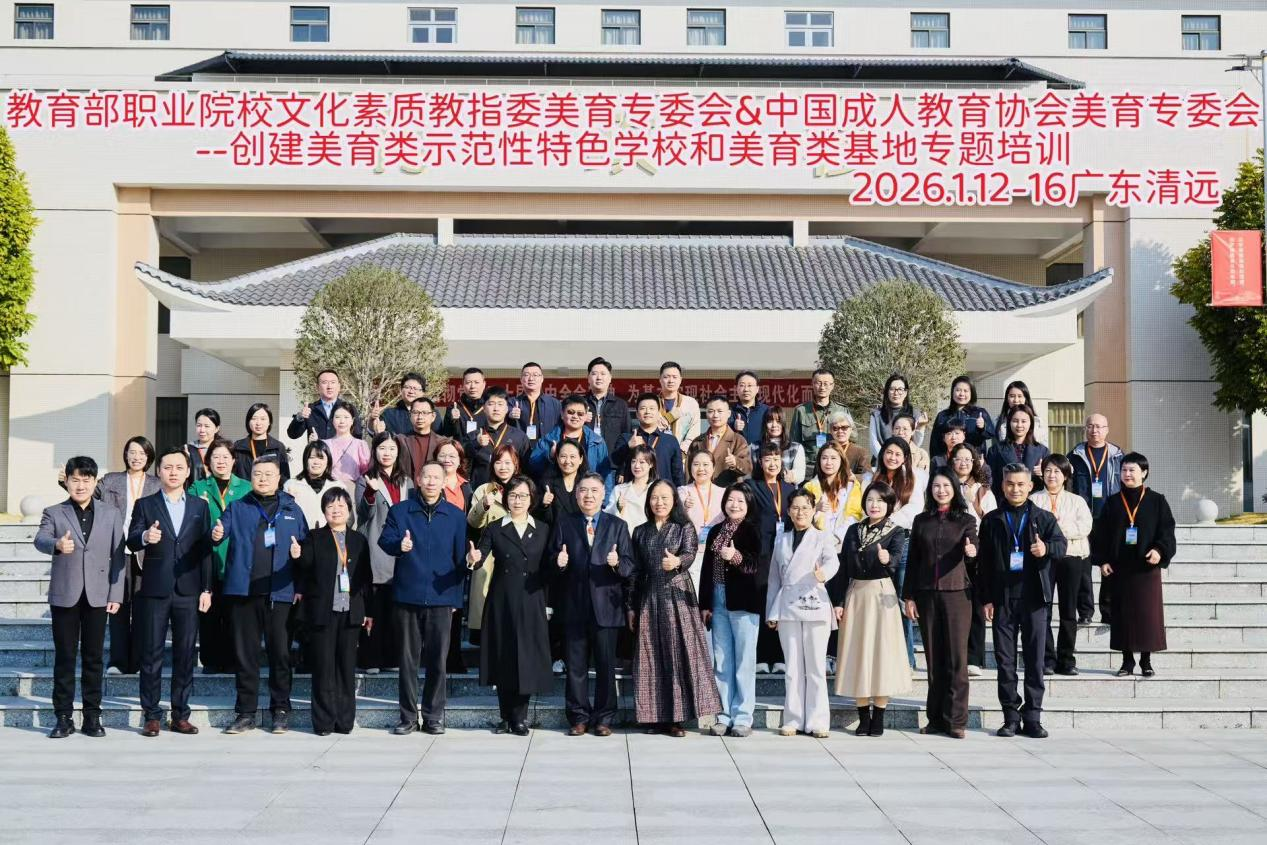 2026年1月12日至16日,由中國成人教育協(xié)會(huì)美育專業(yè)委員會(huì)主辦、廣東科貿(mào)職業(yè)學(xué)院承辦的《創(chuàng)建美育類示范性特色學(xué)校和美育類基地專題培訓(xùn)班》在廣東清遠(yuǎn)圓滿舉辦。本次培訓(xùn)班旨在深入貫徹教育部關(guān)于加強(qiáng)美育工作的決策部署,推動(dòng)美育政策精準(zhǔn)落地,促進(jìn)校際經(jīng)驗(yàn)互鑒。教育部職業(yè)教育與成人教育司原二級(jí)巡視員劉杰、專委會(huì)理事長郭青春等出席開班儀式,來自全國各地高職院校的美育工作負(fù)責(zé)人及骨干教師齊聚一堂,共探美育高質(zhì)量發(fā)展新路徑。廣東工程職業(yè)技術(shù)學(xué)院作為廣東省推薦的美育類示范性特色學(xué)校代表,受邀參與本次高水平培訓(xùn),藝術(shù)設(shè)計(jì)學(xué)院院長郭希在會(huì)上作專題報(bào)告,分享我校美育育人體系的構(gòu)建經(jīng)驗(yàn)與成果。
