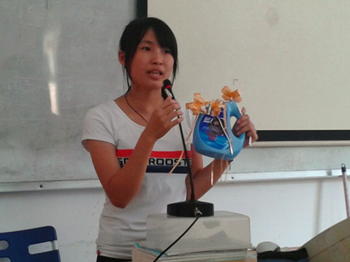 活動現(xiàn)場,8支入圍決賽的隊(duì)伍展開了激烈角逐。參賽作品為現(xiàn)場制作,原材料均采自宿舍常用生活廢舊用品。經(jīng)過選手們的巧手,紙盒、塑料瓶、破舊牛仔褲、龍眼枝和核等廢舊物品華麗轉(zhuǎn)身,成為六角精品盒、七彩風(fēng)鈴、嘻哈風(fēng)格手提包、精致掛飾……還有參賽選手利用物理學(xué)原理及豐富的想象力,把廢紙和塑料瓶神般結(jié)合成了能飛向高空400米的水箭炮。一件件獨(dú)具匠心、妙趣橫生的手工作品,擺滿了整個(gè)教室。經(jīng)過評選,建筑工程學(xué)院陳鄧強(qiáng)團(tuán)隊(duì)?wèi){借實(shí)用性強(qiáng)、精致度高精品盒獲得評委青睞,一舉奪冠。