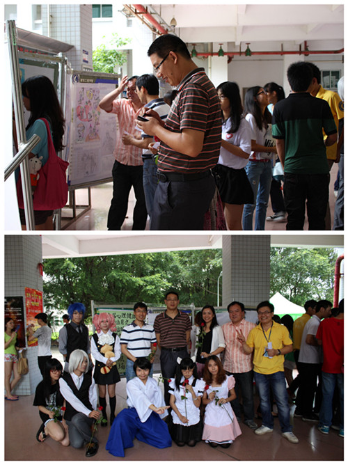 在作品展示現(xiàn)場(chǎng),喜聞樂見的動(dòng)漫設(shè)計(jì)作品展和動(dòng)漫cosplay俏皮的真人秀,將心理健康和個(gè)性發(fā)展合二為一,吸引師生駐足欣賞。師生們?cè)诼嬜髌非傲鬟B忘返、細(xì)細(xì)品味其中的"幸福",并為感動(dòng)自己的"幸福瞬間"投下神圣的一票。學(xué)生工作部桂愛民副部長(zhǎng)、張永強(qiáng)科長(zhǎng),建筑工程學(xué)院學(xué)工隊(duì)伍的全體成員等蒞臨投票現(xiàn)場(chǎng),將本次活動(dòng)推向高潮。