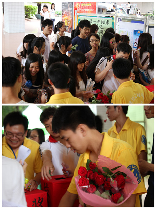 "贈(zèng)人玫瑰、手有余香",工作人員為投票的師生贈(zèng)送玫瑰,將幸福傳遞給每一位師生,將我們"陽(yáng)光建筑、陽(yáng)光心理"的工作理念傳遞出去,促進(jìn)學(xué)生的健康成長(zhǎng),共同建設(shè)幸福校園。