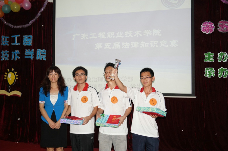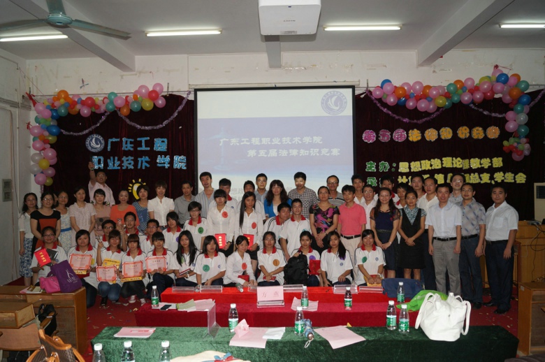 為了切實(shí)提高《思想道德修養(yǎng)與法律基礎(chǔ)》課教學(xué)的實(shí)效性、針對(duì)性,引領(lǐng)廣大學(xué)生成為學(xué)法、知法、守法的典范,弘揚(yáng)法治精神,2013年6月6日1晚上,由思想政治理論課教學(xué)部主辦、計(jì)算機(jī)信息系團(tuán)總支、學(xué)生會(huì)協(xié)辦的廣東工程職業(yè)技術(shù)學(xué)院第五屆法律知識(shí)競(jìng)賽決賽在教學(xué)樓102室隆重舉行。部分系(部)的領(lǐng)導(dǎo)、老師,思想政治理論課教學(xué)部全體專(zhuān)兼職教師,各院系的近200名親友團(tuán)同學(xué)參加了本次活動(dòng)。