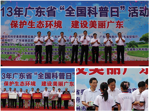 9月14日上午10時(shí),2013年廣東省"全國(guó)科普日"活動(dòng)在廣州市越秀區(qū)英雄廣場(chǎng)拉開帷幕,廣東省人民政府副省長(zhǎng)陳云賢出席啟動(dòng)儀式并宣布2013年廣東省"全國(guó)科普日"活動(dòng)啟動(dòng)。省科協(xié)黨組書記、專職副主席何真,省委宣傳部副部長(zhǎng)蔡伏青,省環(huán)保廳黨組副書記、巡視員王子葵,省教育廳教育研究院院長(zhǎng)湯貞敏,省科技廳副巡視員周木堂,省食品藥品監(jiān)督管理局副局長(zhǎng)陳魯峰,廣州市越秀區(qū)人民政府副區(qū)長(zhǎng)賴志鴻和越秀區(qū)大東街黨工委書記李榮等領(lǐng)導(dǎo)嘉賓出席活動(dòng)。啟動(dòng)儀式由省科協(xié)副主席吳煥泉主持。廣東工程職業(yè)技術(shù)學(xué)院科普志愿者擔(dān)任現(xiàn)場(chǎng)志愿者工作。