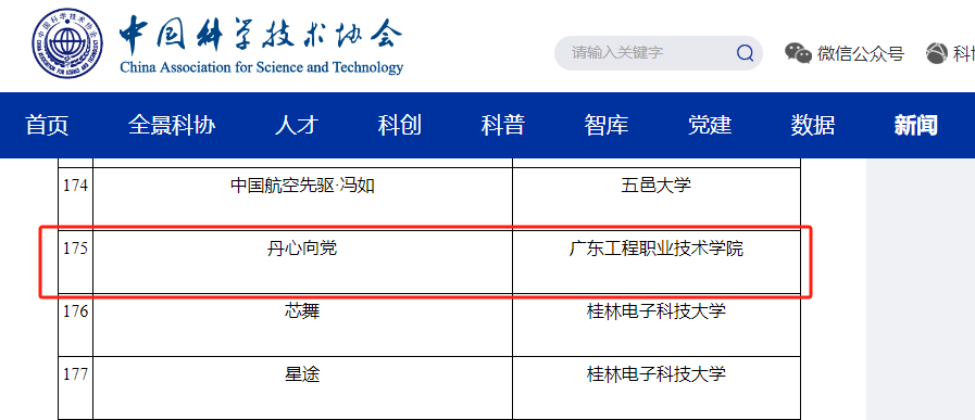中國科協(xié)官網(wǎng)入選截圖