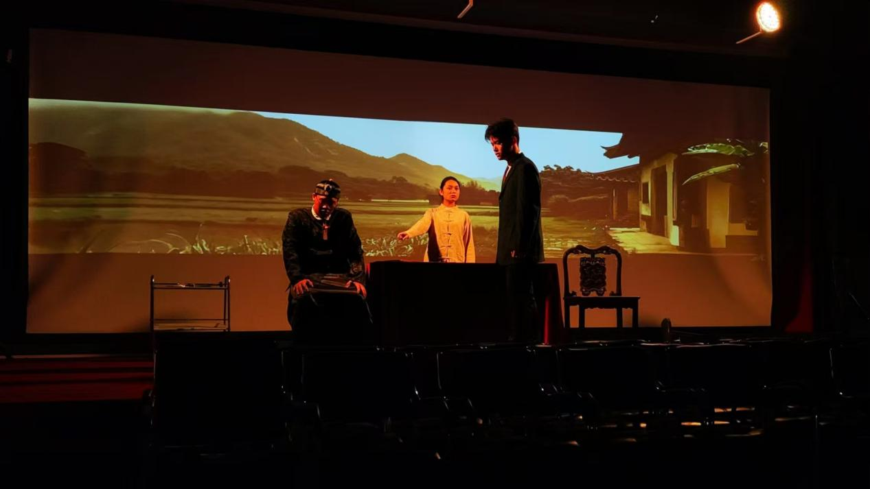 原創(chuàng)紅色舞臺劇《丹心向黨》選取我校首任校長柯麟同志在澳門等地從事黨的地下工作為背景,以籌備新中國成立當日升旗為敘事主線,重現(xiàn)共產(chǎn)黨人追求理想、實現(xiàn)理想的艱難過程。話劇穿插講述了柯麟同志于動蕩的思想、時局變化之下,是如何從四書五經(jīng)中掙脫、堅定共產(chǎn)主義理想,其中的思辨、創(chuàng)新、求索之路,其中數(shù)十年如一日的堅守中,一步步展現(xiàn)其身上可親可敬的理想信念、奮爭精神、職業(yè)擔當、家國情懷。話劇曾獲第四屆粵港澳大灣區(qū)大學(xué)生藝術(shù)節(jié)“藝術(shù)表演獎”等獎項。