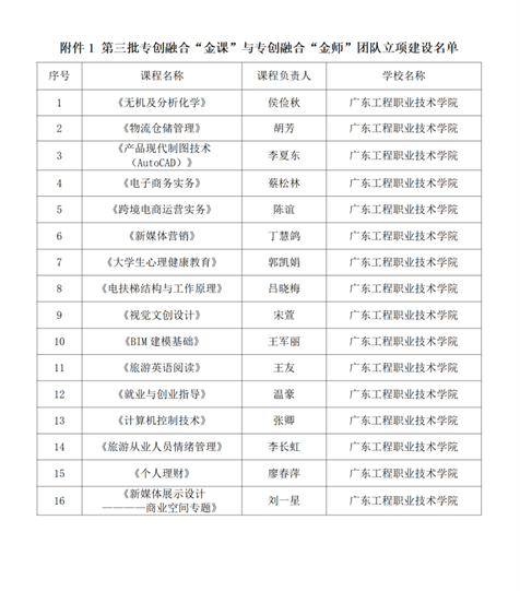 近日,全國高等職業(yè)學(xué)校校長聯(lián)席會(huì)議雙創(chuàng)教育專委會(huì)公布了第三批專創(chuàng)融合“金課”與專創(chuàng)融合“金師”團(tuán)隊(duì)立項(xiàng)建設(shè)名單,根據(jù)全國高等職業(yè)學(xué)校校長聯(lián)席會(huì)議雙創(chuàng)教育專委會(huì)《關(guān)于遴選建設(shè)高等職業(yè)學(xué)校專創(chuàng)融合“金課”與專創(chuàng)融合“金師”團(tuán)隊(duì)的通知》有關(guān)要求,經(jīng)評審遴選,我校推薦申報(bào)的《無機(jī)及分析化學(xué)》等16門課程被確定為全國高等職業(yè)學(xué)校校長聯(lián)席會(huì)議雙創(chuàng)教育專委會(huì)第三批專創(chuàng)融合“金課”與專創(chuàng)融合“金師”團(tuán)隊(duì)項(xiàng)目立項(xiàng)建設(shè)。