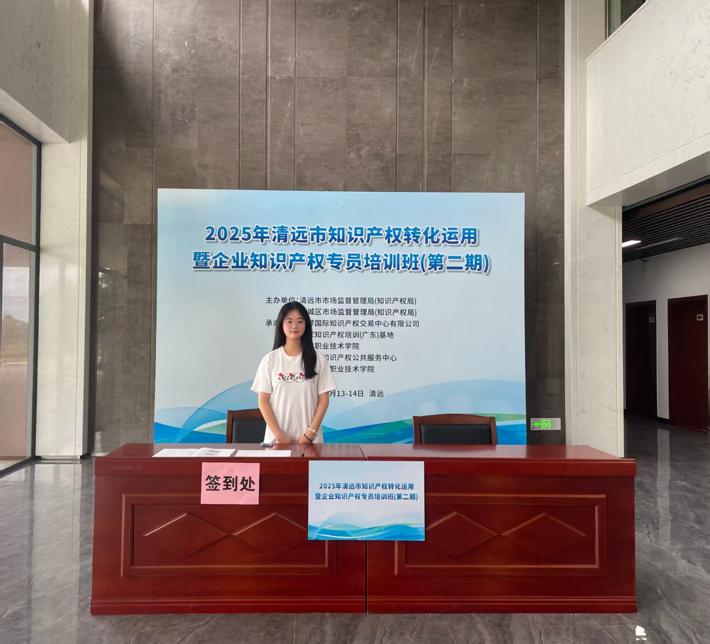 本次培訓(xùn)活動(dòng)由清遠(yuǎn)市市場(chǎng)監(jiān)督管理局(知識(shí)產(chǎn)權(quán)局)、清城區(qū)市場(chǎng)監(jiān)督管理局(知識(shí)產(chǎn)權(quán)局)聯(lián)合主辦,橫琴國(guó)際知識(shí)產(chǎn)權(quán)交易中心有限公司等單位共同承辦。我院會(huì)展策劃與管理專業(yè)師生團(tuán)隊(duì)作為協(xié)辦方,充分發(fā)揮專業(yè)優(yōu)勢(shì),將課堂理論知識(shí)與實(shí)際會(huì)務(wù)工作緊密結(jié)合,全程深度參與培訓(xùn)籌備與組織工作。從會(huì)議前期的精心策劃、物資準(zhǔn)備,到現(xiàn)場(chǎng)的秩序維護(hù)、服務(wù)保障,師生們嚴(yán)謹(jǐn)細(xì)致、盡心盡力,以認(rèn)真負(fù)責(zé)的態(tài)度和出色的工作表現(xiàn)贏得了承辦單位的一致高度評(píng)價(jià),充分彰顯了我院“學(xué)用結(jié)合”的育人成效。