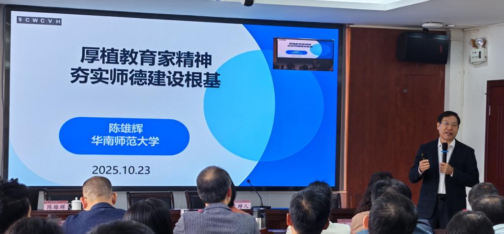陳雄輝研究員以《厚植教育家精神 夯實(shí)師德建設(shè)根基》為題,從弘揚(yáng)教育家精神、夯實(shí)師德建設(shè)根基、培養(yǎng)創(chuàng)新人才和案例分析等三個(gè)方面做了精彩的講座,并通過新時(shí)代高校教師職業(yè)行為十項(xiàng)準(zhǔn)則的解讀、違反準(zhǔn)則的警示案例、為人師表關(guān)愛學(xué)生成長案例,提出了夯實(shí)師德建設(shè)根基、踐行育人責(zé)任、做好引路人的建議,為學(xué)校開展師德師風(fēng)工作提供了豐富的經(jīng)驗(yàn),對學(xué)校教職工弘揚(yáng)教育家精神、爭做“四有”好老師提供了深刻啟迪。