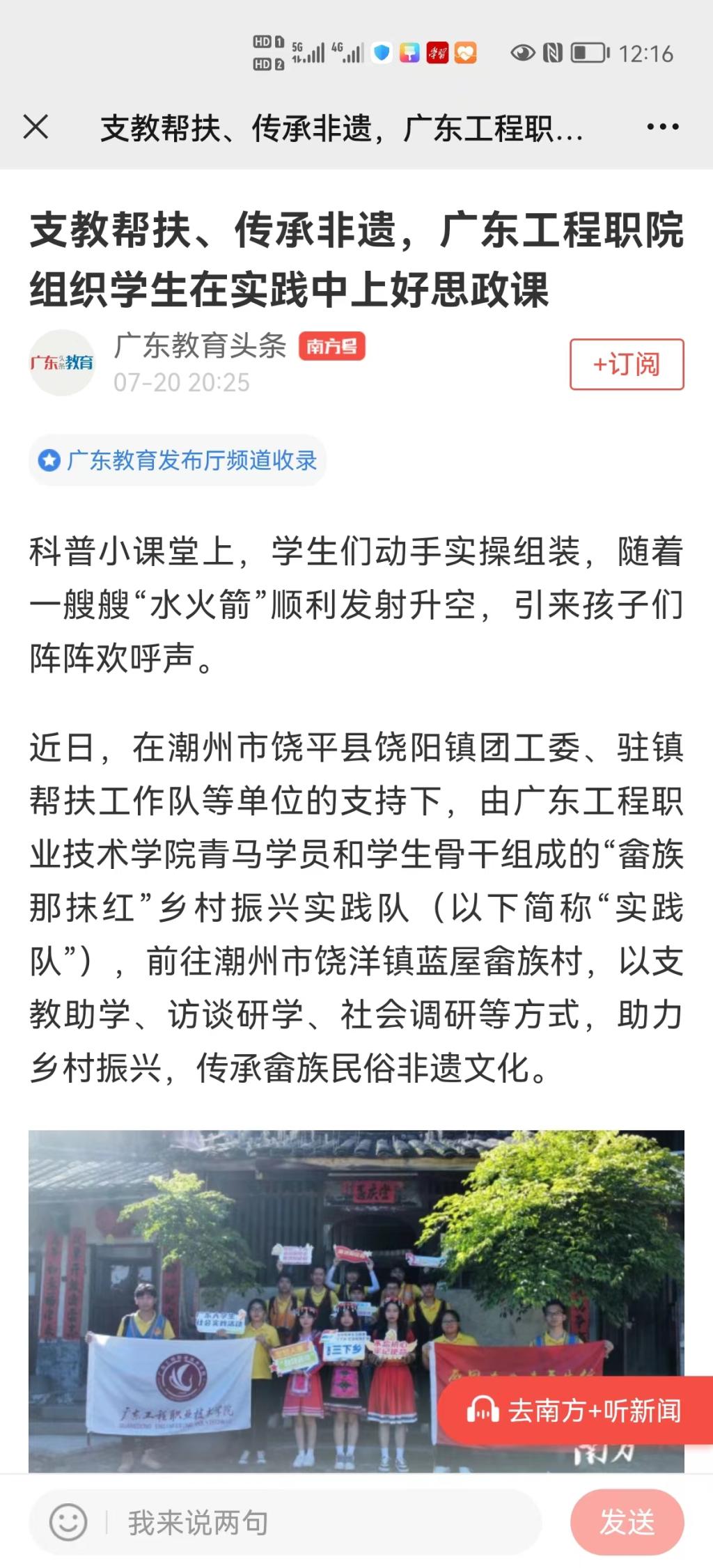 廣東工程職業(yè)技術學院有關負責人介紹,暑期三下鄉(xiāng)社會實踐活動,旨在為青年學生們上一堂生動有趣的“大思政課”。帶領學生體驗畬族民俗風情,在實踐中了解國情社情民情,在社會課堂中受教育、長才干、作貢獻,為藍屋畬族村特色發(fā)展注入青春力量。