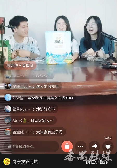“各位兄弟姐妹、叔叔阿姨,我手上的這款產(chǎn)品是梅州客家特產(chǎn)白切糕,它由客家傳統(tǒng)工藝制作而成,濃濃芝麻香承載著兒時(shí)的味道,吃一口簡(jiǎn)直甜進(jìn)心里。今天下單更有優(yōu)惠、包郵哦,買它買它!......”日前,在五華縣轉(zhuǎn)水鎮(zhèn)美宏農(nóng)業(yè)發(fā)展公司的直播基地,來自廣東工程職業(yè)技術(shù)學(xué)院商務(wù)學(xué)院“三下鄉(xiāng)志愿服務(wù)隊(duì)”的大學(xué)生楊舒蕊、藍(lán)舒婷熱情地向網(wǎng)友推介絲苗米和客家白切糕等五華農(nóng)產(chǎn)品,幫助當(dāng)?shù)靥岣咿r(nóng)產(chǎn)品銷量。