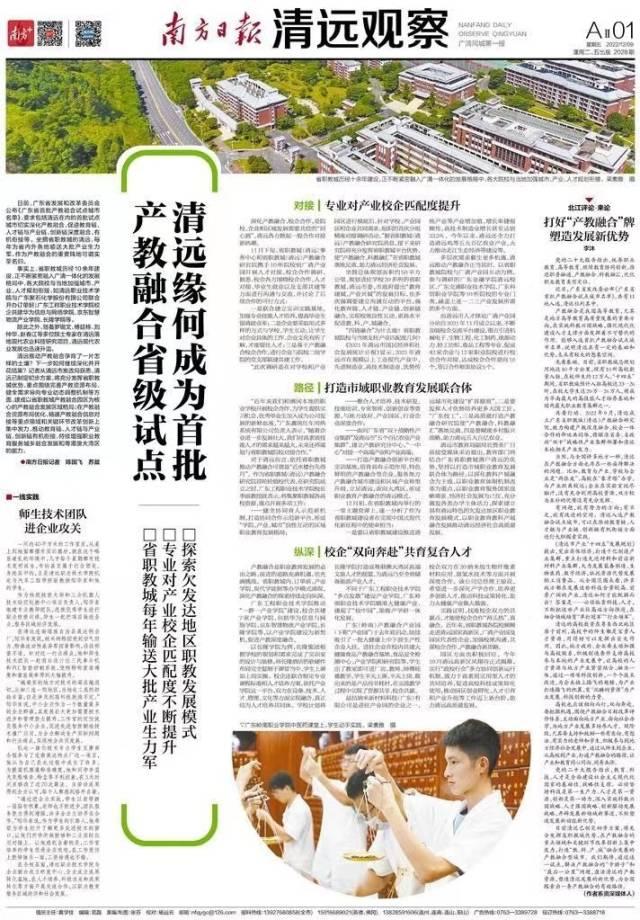 ——打造產(chǎn)教融合創(chuàng)新平臺和實訓基地,培育具有示范作用、特色鮮明的產(chǎn)教融合型企業(yè),服務地方產(chǎn)教融合城市建設(shè)和區(qū)域產(chǎn)業(yè)轉(zhuǎn)型升級,立足清遠,面向大灣區(qū),形成職業(yè)教育產(chǎn)教融合的清遠模式。