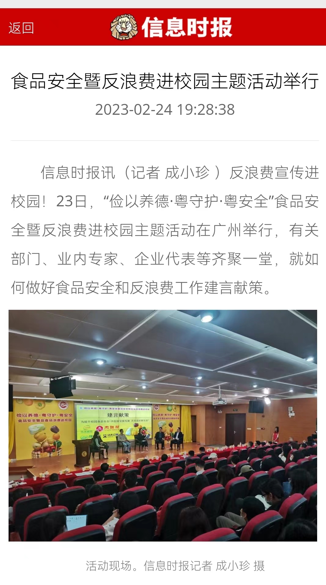 信息時(shí)報(bào)訊(記者 成小珍 )反浪費(fèi)宣傳進(jìn)校園!23日,“儉以養(yǎng)德·粵守護(hù)·粵安全”食品安全暨反浪費(fèi)進(jìn)校園主題活動(dòng)在廣州舉行,有關(guān)部門、業(yè)內(nèi)專家、企業(yè)代表等齊聚一堂,就如何做好食品安全和反浪費(fèi)工作建言獻(xiàn)策。