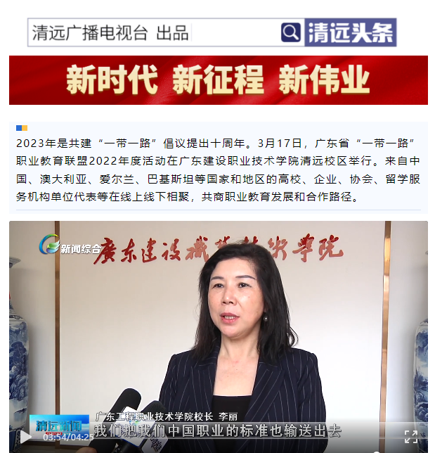 2023年是共建“一帶一路”倡議提出十周年。3月17日,廣東省“一帶一路”職業(yè)教育聯(lián)盟2022年度活動在廣東建設職業(yè)技術學院清遠校區(qū)舉行。來自中國、澳大利亞、愛爾蘭、巴基斯坦等國家和地區(qū)的高校、企業(yè)、協(xié)會、留學服務機構單位代表等在線上線下相聚,共商職業(yè)教育發(fā)展和合作路徑。