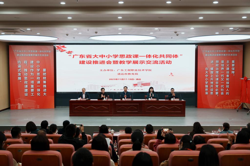 新快報訊 由清遠市教育局、廣東工程職業(yè)技術學院共同舉辦的“廣東省大中小學思政課一體化共同體”建設推進會暨教學展示交流活動,近日在廣東工程職業(yè)技術學院(清遠校區(qū))舉行。來自省內外高校與清遠市教育系統(tǒng)的專家學者、名師工作室主持人以及思政課骨干教師等近兩百名大中小學思政課教師參加了活動。